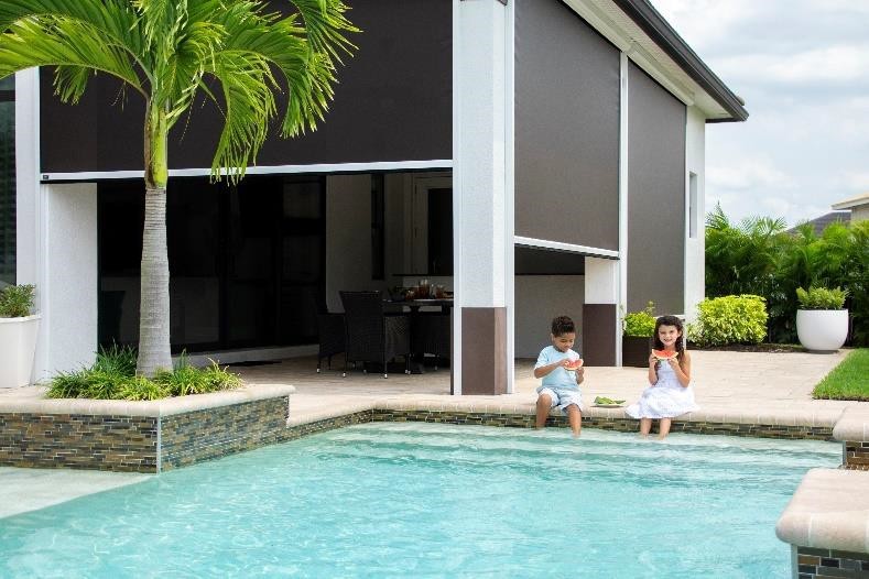 Create a private getaway free from the heat of the sun and the gaze of your neighbors. Solar and privacy screens block the sun and its heat for cooler outdoor spaces with added privacy.